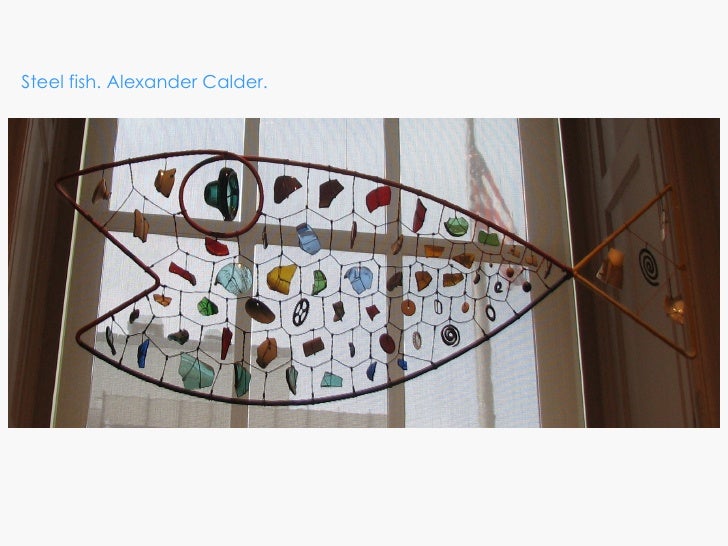 ** Esta lámina es la que trabajaremos sobre este escultor al que le gustaba hacer móviles, esculturas movidas por el aire a veces, otras por un motor. Como estamos en el tema de animales qué mejor que imaginarnos un pez de colores en movimiento.